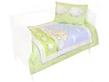 Pościel do łóżeczka Miś z owieczką zielony w rozmiarze 100x135 z poszewką 40x60 polskiej firmy Detexpol dla dzieci została wykonana z wysokiej jakości 100 % bawełny.