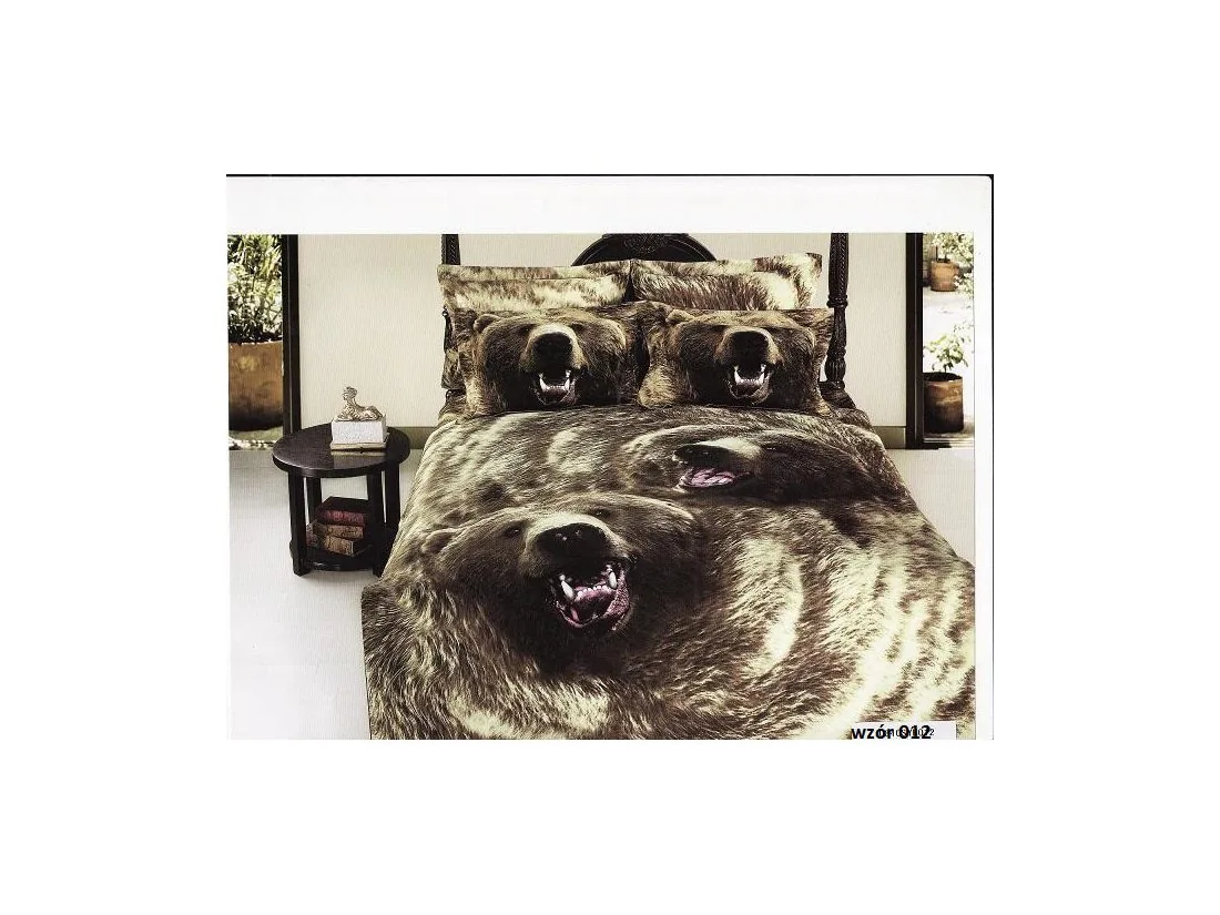 Komplet pościeli satynowej Rosso to idealne rozwiązanie dla osób, które szukają ciekawych rozwiązań do swojej sypialni. Duża wesoła kolorowa aplikacja z wizerunkiem dzikich zwierząt, postać niedzwiedzia brunatnego to propozycja dla miłośników dzikiej natury, dużych dzikich zwierząt oraz osób ceniących w swojej sypialni niebanalne rozwiązania.
