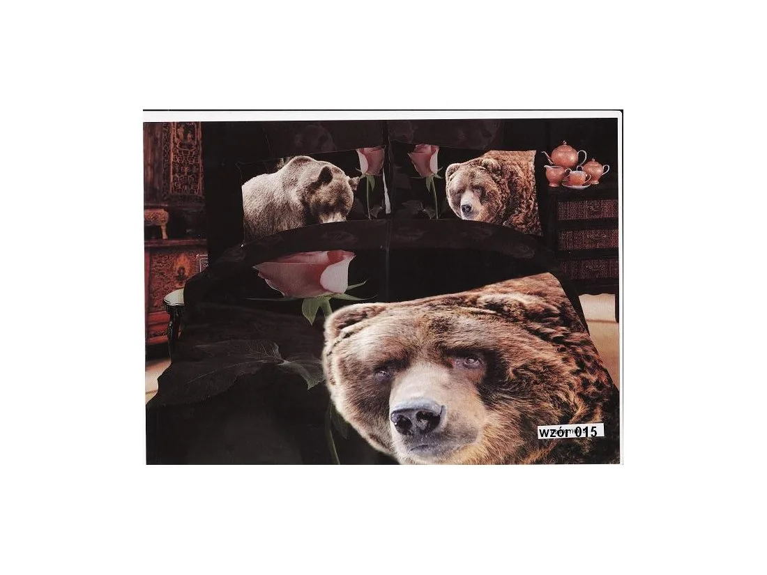 Komplet pościeli satynowej Rosso to idealne rozwiązanie dla osób, które szukają ciekawych rozwiązań do swojej sypialni. Duża wesoła kolorowa aplikacja z wizerunkiem dzikich zwierząt, postać niedzwiedzia brunatnego to propozycja dla miłośników dużych dzikich zwierząt oraz osób ceniących w swojej sypialni niebanalne rozwiązania.