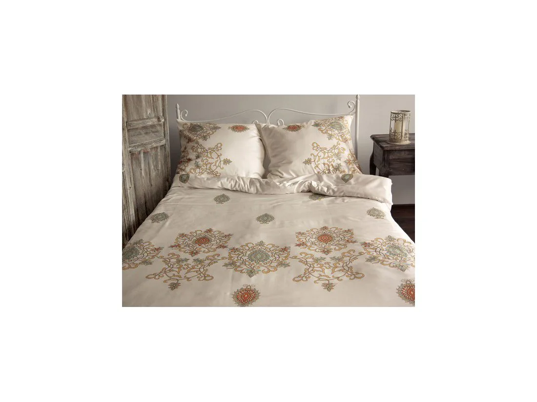 Piękny barokowy motyw pościeli satynowej oraz jasna kolorystyka to wyjście z monotonii oraz obiekt pożądania wszystkich ceniących luksus i elegancja w swojej sypialni.