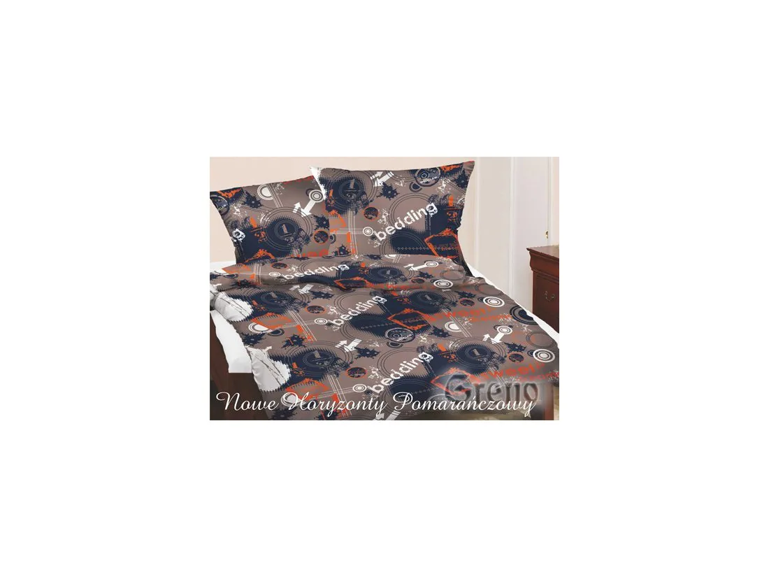 Komplet pościeli satynowej z kolekcji Gold Line 140x200 firmy Greno wzór Nowe Horyzonty Pomarańczowy to symbol nowoczesnej sypialni.