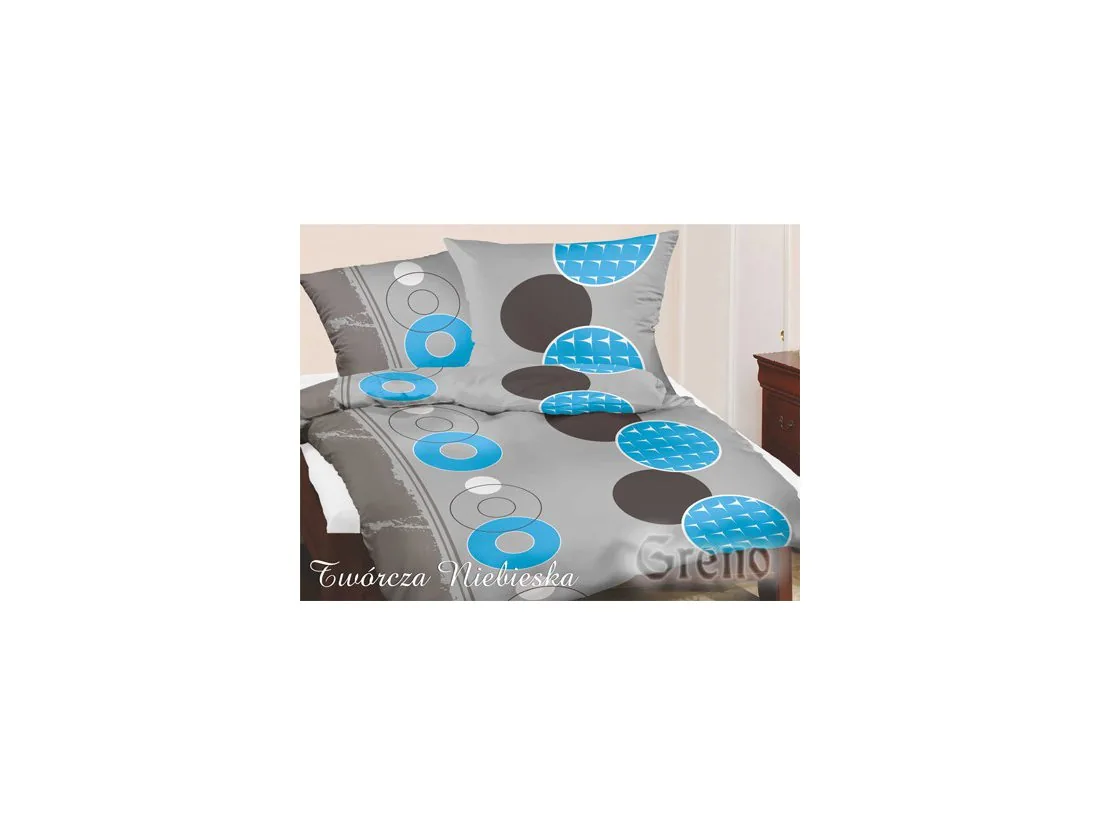 Komplet pościeli satynowej wzór Twórcza Niebieska polskiej firmy Greno z kolekcji Gold Line to nowa propozycja pościeli satynowej.