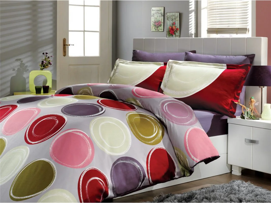 Połączenie koloru różowego, fuksji oraz modny geometryczny wzór w koła tworzą piękną kompozycje, która niewątpliwie zapewni każdej sypialni niecodzienny charakter oraz wyjątkowy urok.