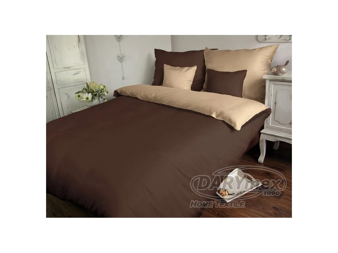 Komplet pościeli satynowej dwustronnej w rozmiarze 160x200 cm firmy Darymex w kolorze beżowo czekoladowym.