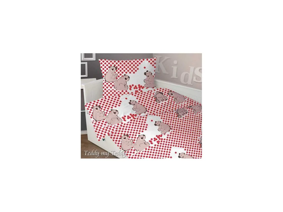 Komplet pościeli satynowej dziecięcej Greno 160x200 Teddy My Teddy Czerwony