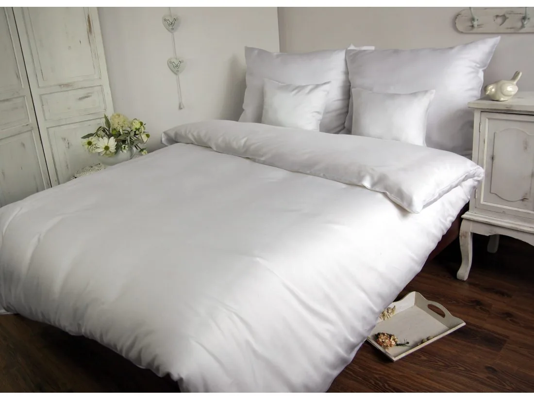 Komplet pościeli satynowej jednobarwnej w rozmiarze 180x200 cm z kolekcji Carmen w kolorze białym.