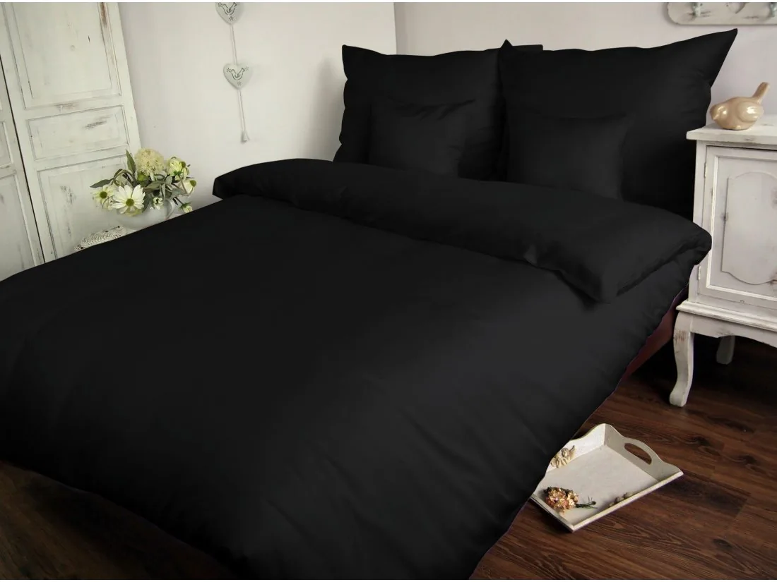 Komplet pościeli satynowej jednobarwnej w rozmiarze 180x200 cm firmy Darymex z kolekcji Carmen w kolorze czarnym.