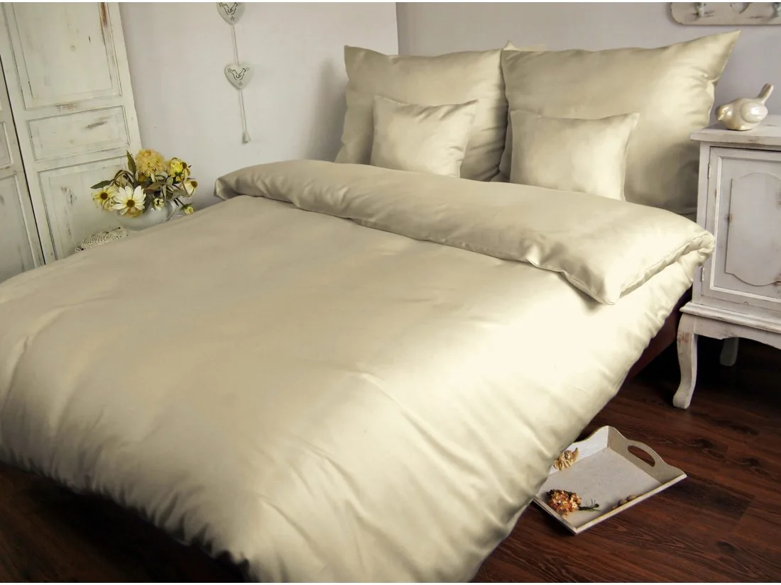 Komplet pościeli satynowej jednobarwnej w rozmiarze 180x200 cm firmy Darymex z kolekcji Carmen w kolorze kremowym.