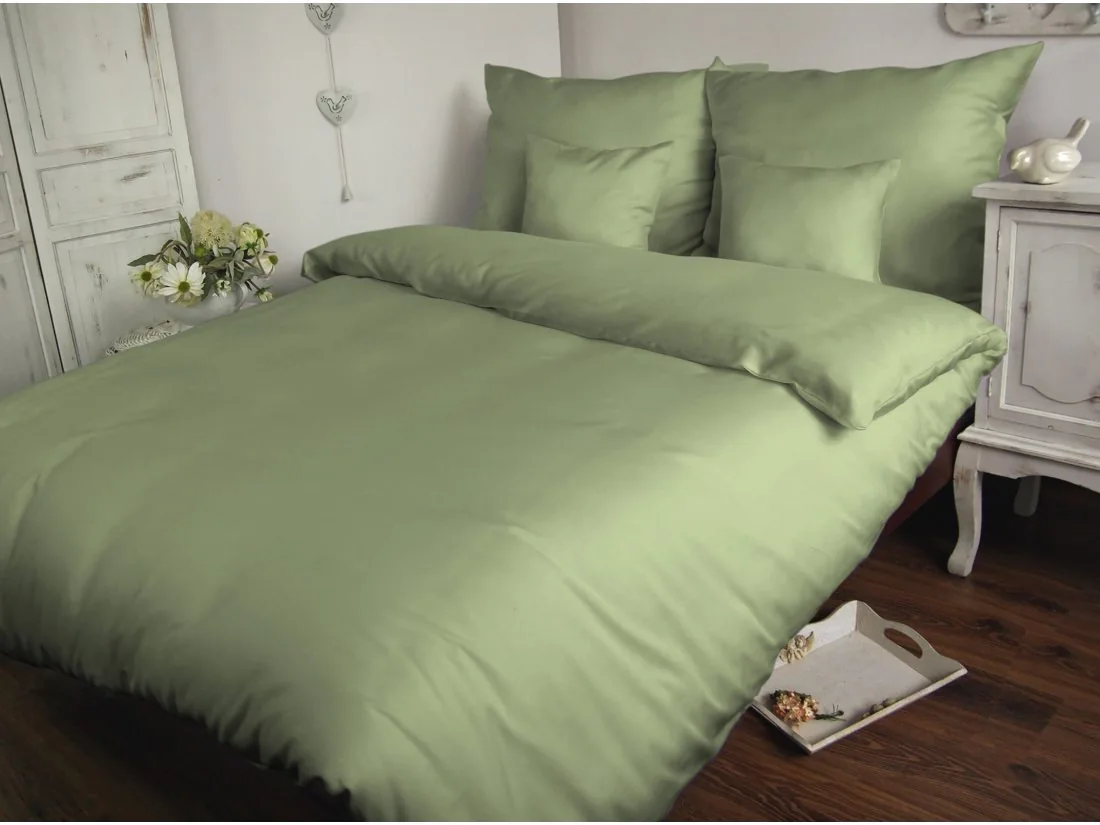 Komplet pościeli satynowej jednobarwnej w rozmiarze 180x200 cm firmy Darymex z kolekcji Carmen w kolorze oliwkowym.