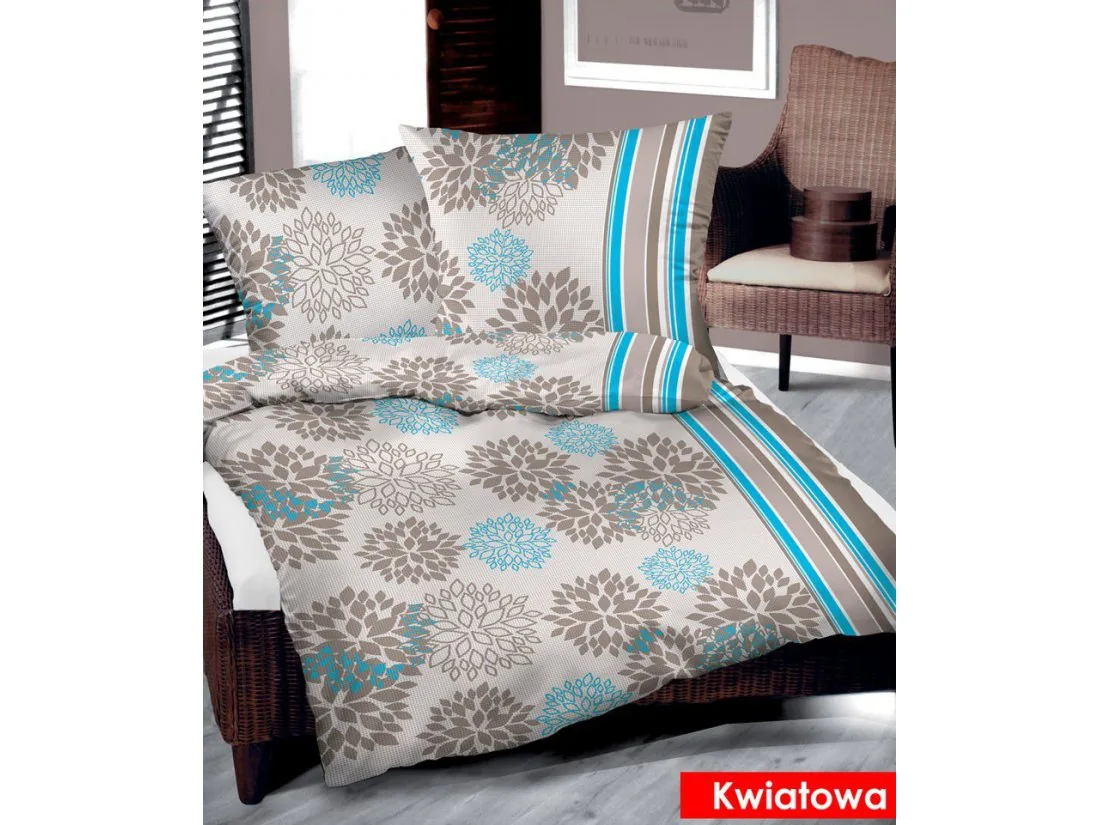 Komplet pościeli bawełnianej Bielbaw firmy Greno wzór Kwiatowa 160x200 to najnowsze trendy w konfekcji pościelowej oraz nowatorski kwiatowy wzór w modnej beżowo turkusowej kolorystyce.