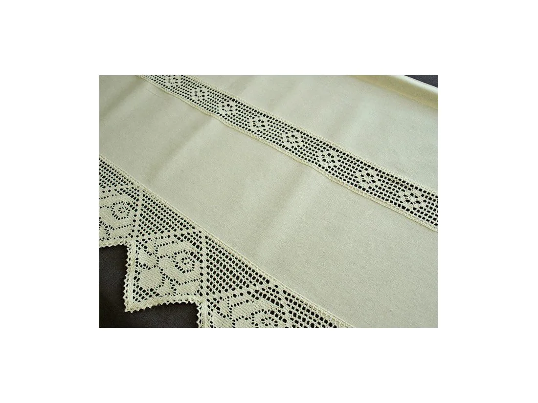 Dekoracyjny lambrekin w rozmiarze 70 x 200 cm /wys/dł/ w kolorze beżowym wykończona ozdobną koronką nada niepowtarzalny klimat każdej jadalni, kuchni.