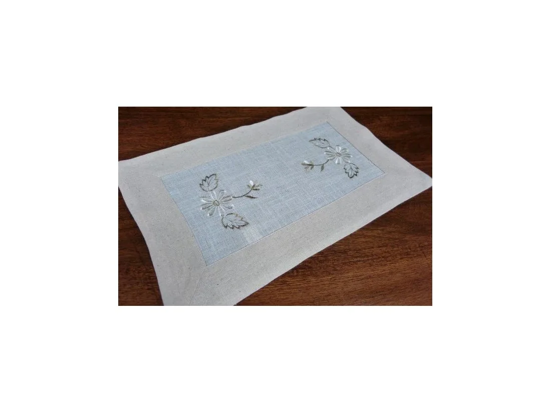 Nakładka bieżnik 30x45 cm, został wykonany z wysokiej jakości tkaniny poliestrowej w kolorze lnianopodobnym z dekoracyjnym kwiatowym haftem.
