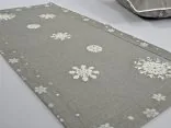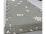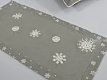 Nakładka świąteczna w rozmiarze 40x90 cm w kolorze szarym z aplikacja naszytych jasno kremowych śnieżynek.