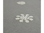 Aplikacja naszytych śnieżynek na bieżniku jest w kolorze jasno kremowym. Wykończenie nakładki jest zakończone dekoracyjną lamówką.