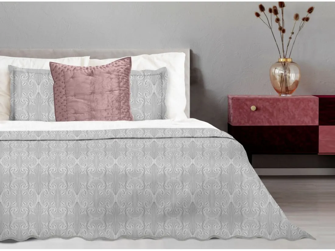 Subtelny, delikatny wzór narzuty żakardowej Barok idealnie współgra z ciepłym kolorem popielatym co powoduje, że narzuta może stać się ozdoba każdego wnętrza.