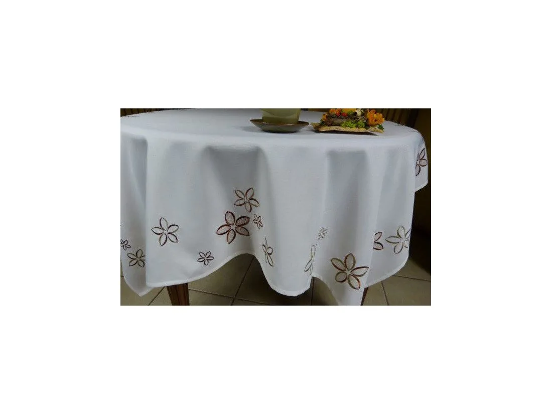 Obrus haftowany Kwiatuszki 130x180 cm int 051 brązowy