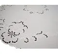 Dekoracyjny haftowany obrus o średnicy 175 cm w kolorze białym z haftowanymi kwiatkami został wykonany z tkaniny - 100 % poliestrowej, charakteryzuje się nowoczesnym desingiem, prostym wzorem oraz modnym kolorem.