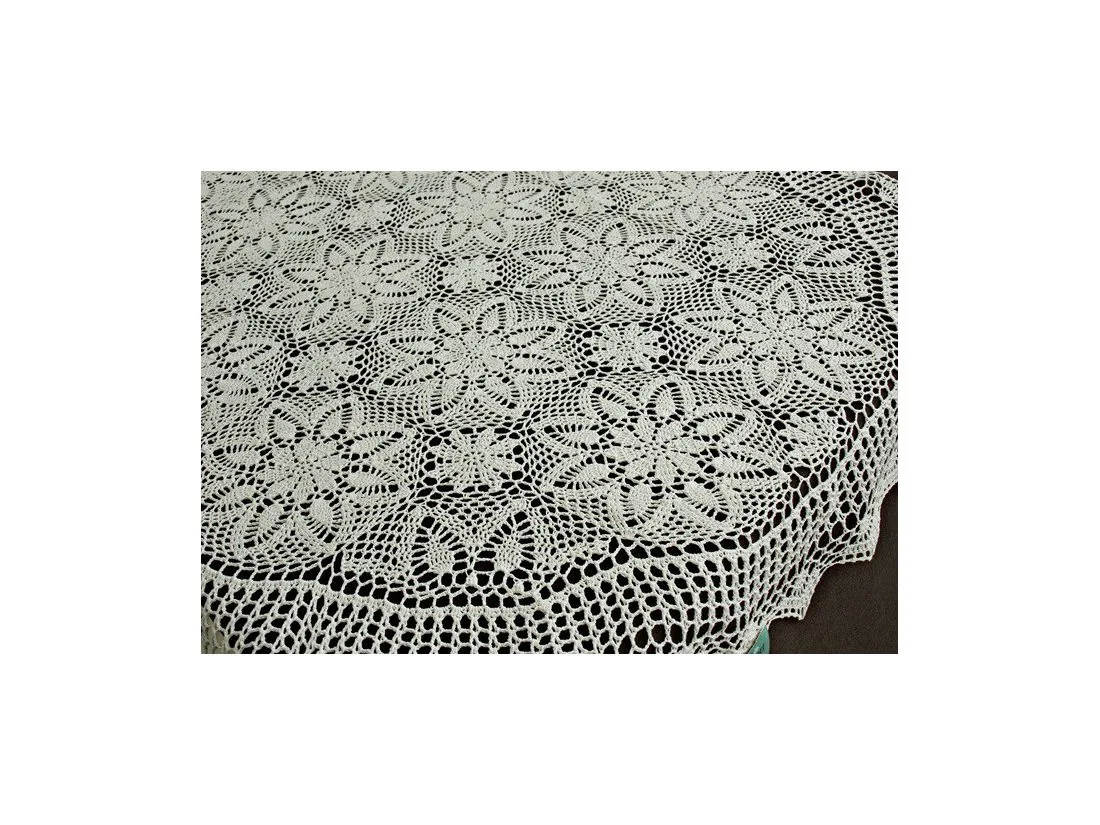 Obrus został wykonany metodą szydełkową.