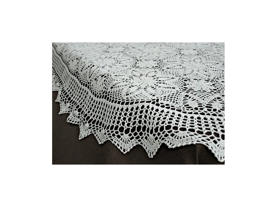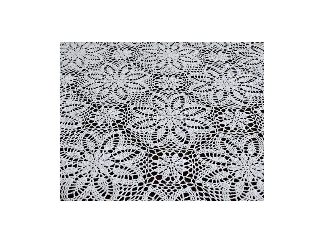Obrus szydełkowy w rozmiarze 130x180 cm został wykonany z nici 100 % bawełnianej w kolorze białym.