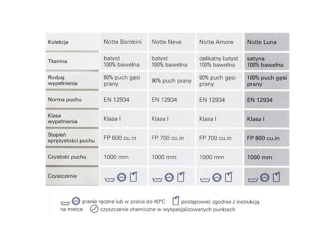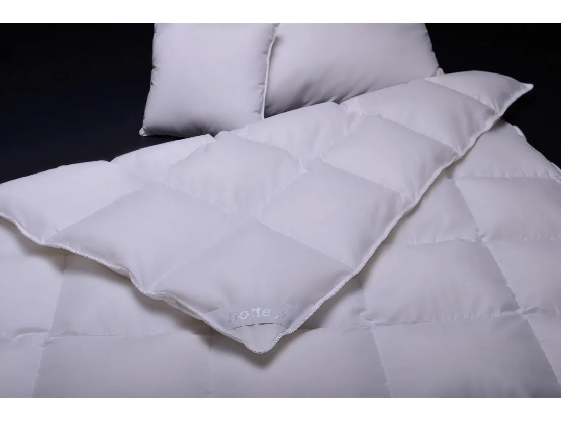 Najwyższej jakości poduszka puchowa Notte Luna 50x80 posiada konstrukcję 3 komorową, gdzie wewnętrzna komora wypełniona jest świeżym półpuchem gęsim 30%, natomiast komory zewnętrzne wypełnione są gęsim, nowym 100% puchem. Ziarna puchu są starannie wyselekcjonowane dzięki czemu gwarantują wysoką sprężystość i lekkość.