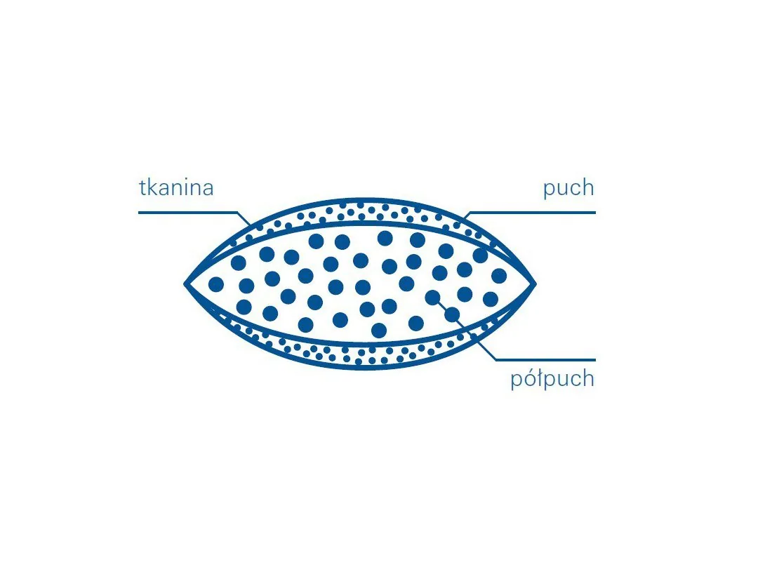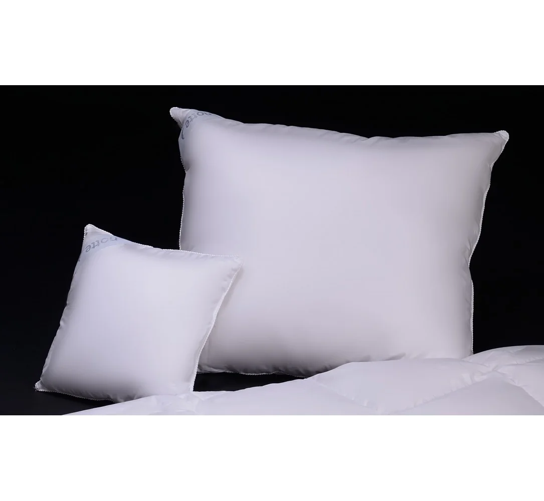 Najwyższej jakości poduszka puchowa Notte Luna 65x65 posiada konstrukcję 3 komorową, gdzie wewnętrzna komora wypełniona jest świeżym półpuchem gęsim 30%, natomiast komory zewnętrzne wypełnione są gęsim, nowym 100% puchem. Ziarna puchu są starannie wyselekcjonowane dzięki czemu gwarantują wysoką sprężystość i lekkość.