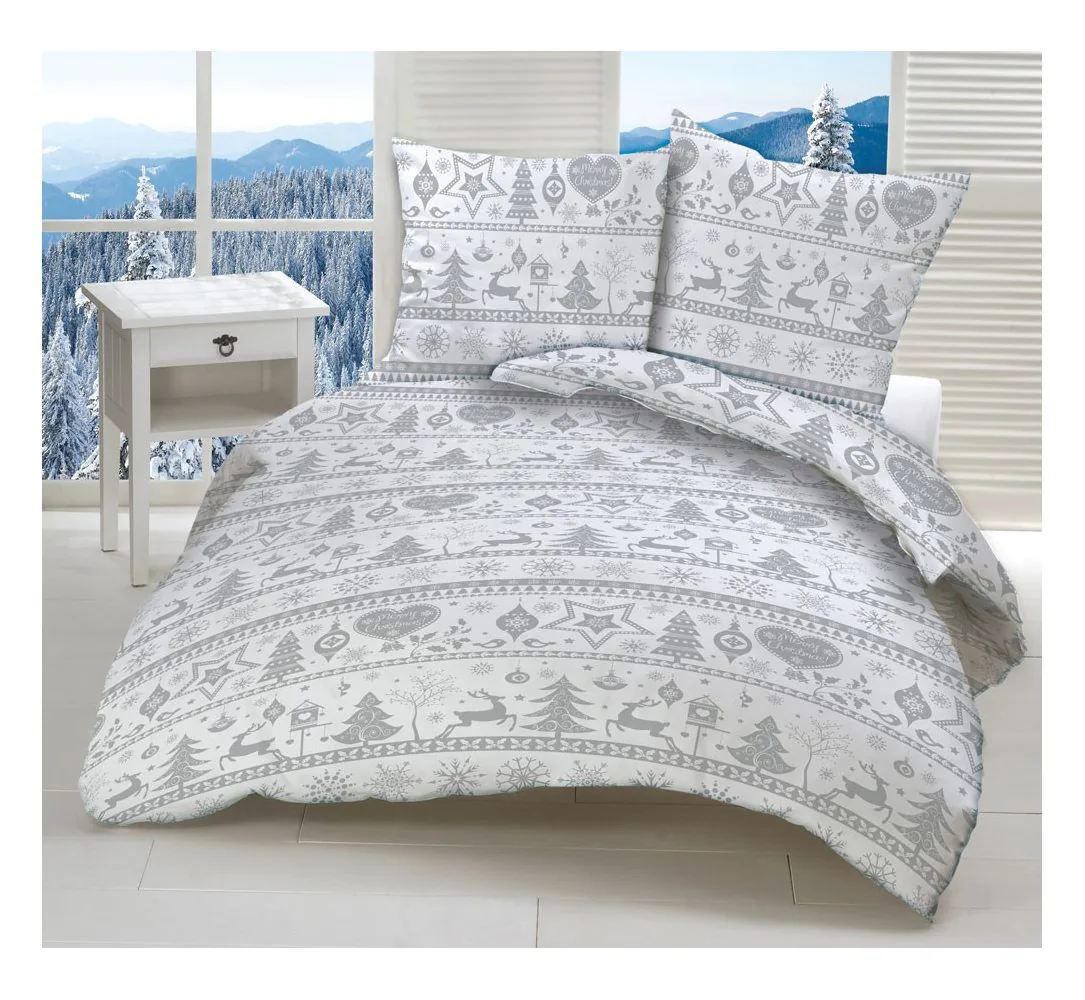 Komplet pościeli świątecznej z bawełny wzór Magiczna Popielata to najnowsze świąteczne trendy w konfekcji pościelowej oraz nowatorski świąteczny wzór w delikatnej kolorystyce.