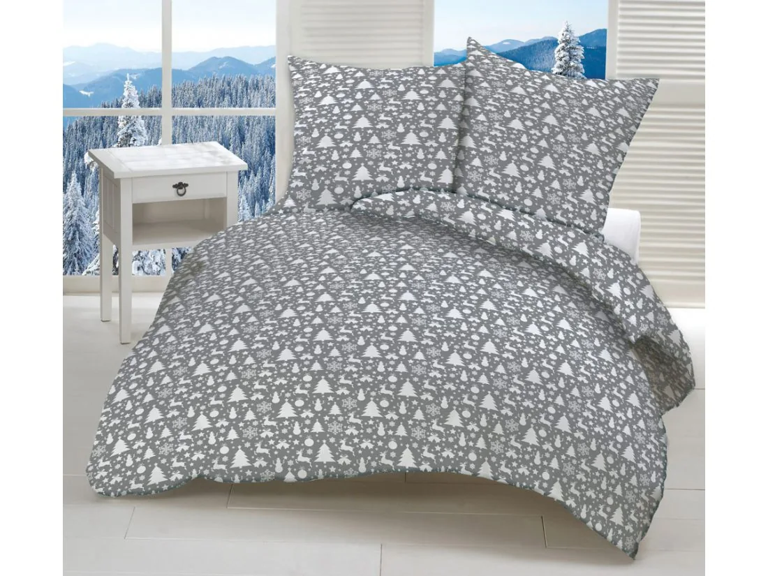 Komplet pościeli świątecznej z bawełny wzór Świąteczna Popielata to najnowsze świąteczne trendy w konfekcji pościelowej oraz nowatorski wzór w delikatnej kolorystyce.