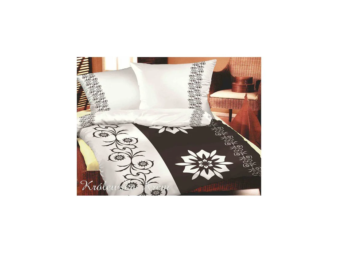 Wyjątkowy wygląd pościeli z bawełny Bielbaw zawdzięczamy odważnemu połączeniu koloru kość słoniowa z ciemnym brązem/ gorzka czekolada oraz pięknym kwiatowym wzorem.