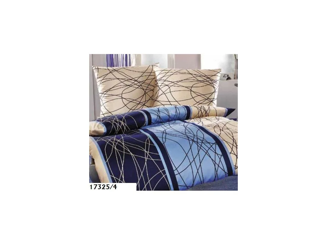 Innowacyjny przykuwający geometryczny wzór pościeli z bawełny satynowej oraz modne połączenie koloru jasnego kremu z zawsze modnym kolorem niebieskim to propozycja dla osób ceniących w swojej sypialni zawsze modną klasykę.
