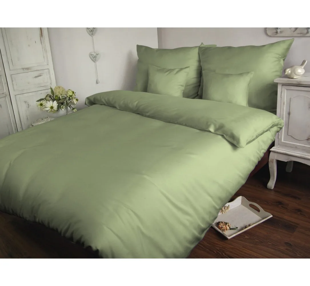 Komplet pościeli satynowej jednobarwnej w rozmiarze 140x200 cm firmy Darymex z kolekcji Carmen w kolorze oliwkowym.