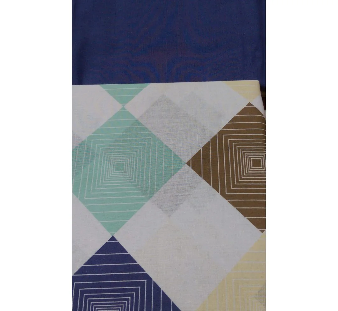 Pościeli bawełniana o fantazyjnym geometrycznym wzorze emanuje optymizmem oraz pozytywną energią. Poszewki w rozmiarze 70x80 w jednobarwnym granatowym kolorze. Poszwa 160x200 w jasnej kolorystyce z kolorowymi rombami. To propozycja pościeli dla optymistów oraz osób idących przebojem przez życie.