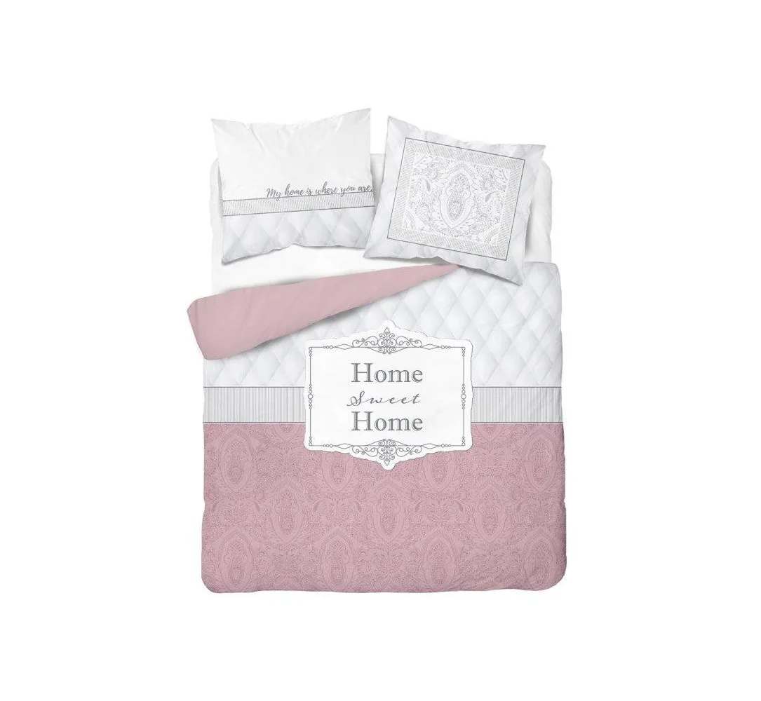 Pościel z bawełny - 220x200 - Home Sweet Home Różowa - 2976 B - Holland holenderska