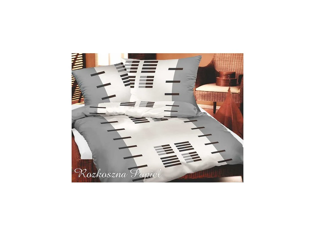 Wyjątkowy wygląd pościeli Bielbaw zawdzięczamy odważnemu połączeniu koloru czarnego, szarego, białego oraz ciekawy modny geometryczny wzór.
