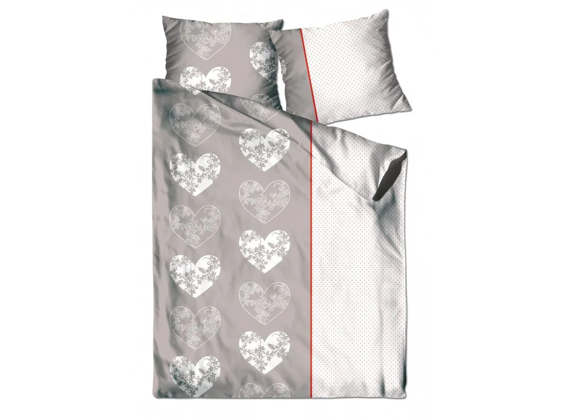 Komplet pościeli bawełnianej Bielbaw firmy Greno wzór Love Me Beżowa140x200 to najnowsze trendy w konfekcji pościelowej oraz romantyczny wzór serduszek w modnej czerwono białej kolorystyce.