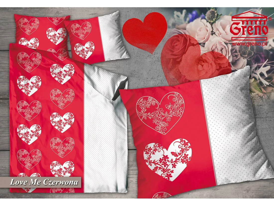 Komplet pościeli bawełnianej Bielbaw firmy Greno wzór Love Me Czerwona 140x200 to najnowsze trendy w konfekcji pościelowej oraz romantyczny wzór serduszek w modnej czerwono białej kolorystyce.