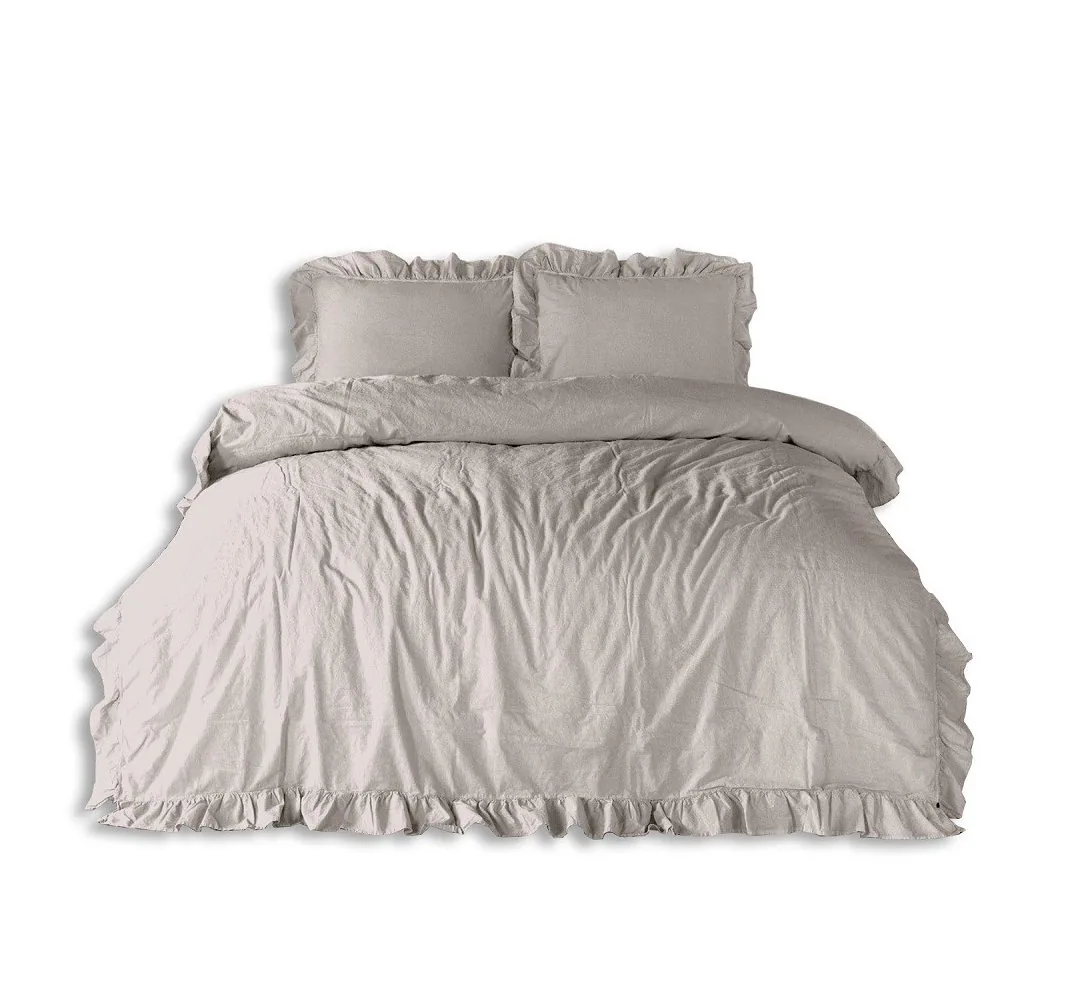 Pościel bawełniana z falbanką 200x220 Exclusive Stonewashed Natural Cream.