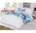 Komplet pościeli satynowej w rozmiarze 180 x 200 cm z kolekcji Sofia 21433/2 w kolorze biało niebieskim z kwiatowym wzornictwem.