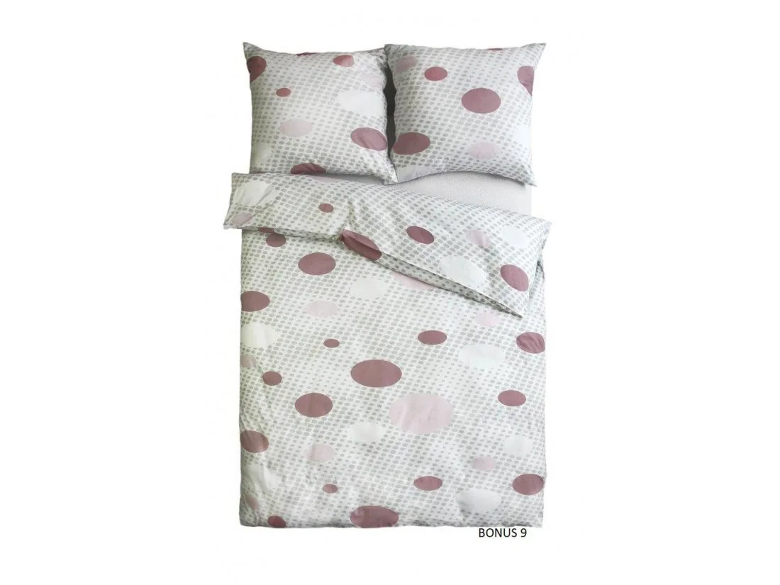 Pościel z satyny bawełnianej - Sweet Home - białe, szare, różowe kropki - 160x200 cm - Bonus 9 - wz. 18579/2 - Andropol