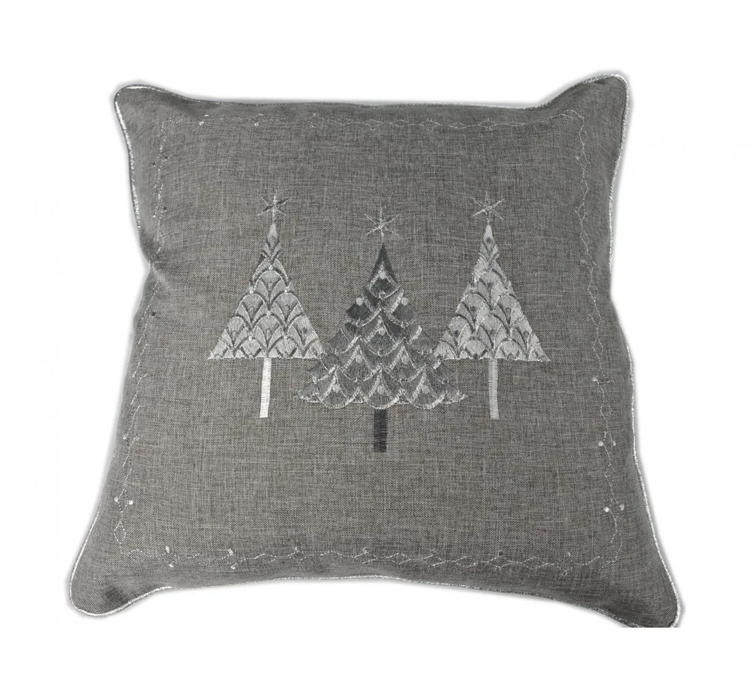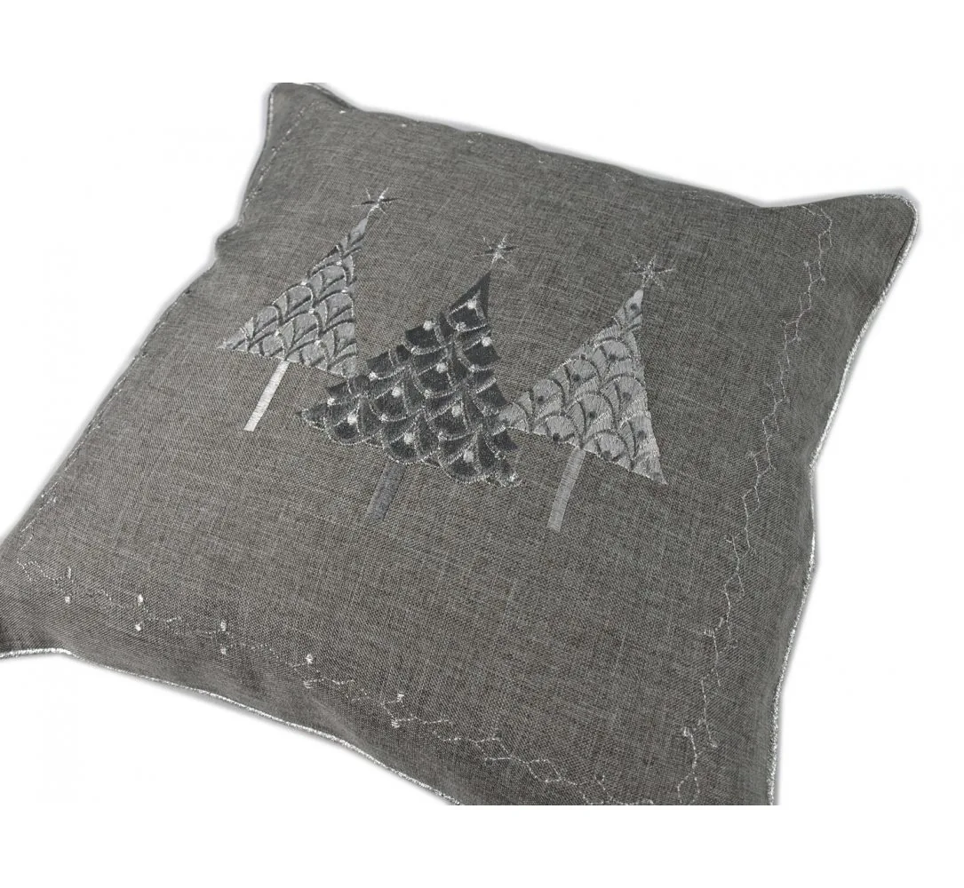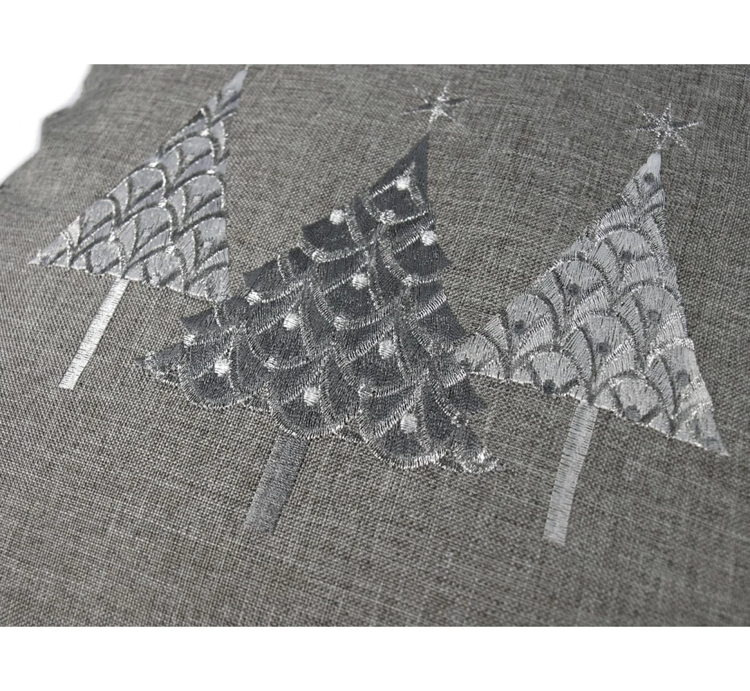 Poszewka jest w kolorze szaro srebrnym z precyzyjnie wyhaftowanym motywem choinki, gwiazdek która magicznie podkreśli klimat Świąt Bożego Narodzenia. To drobna wizytówka każdego domowego ogniska oraz dodatek do każdego wnętrza na specjalne uroczyste okazje jakim jest okres Świat Bożego Narodzenia.