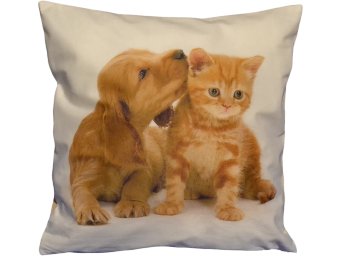 Poszewka dekoracyjna Foto z mikrofibry w rozmiarze 40x40 z oryginalnym nadrukiem uroczych maluszków kotka i pieska.
