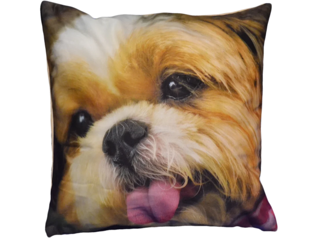 Poszewka dekoracyjna Foto z mikrofibry w rozmiarze 40x40 z oryginalnym nadrukiem uroczego pieska rasy Jork.