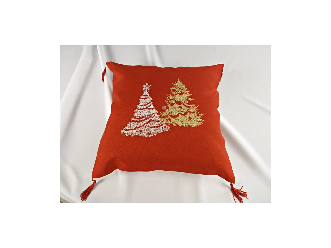 Poszewka dekoracyjna świąteczna w rozmiarze 40x40 cm w kolorze czerwonym z aplikacją motywu choinek.