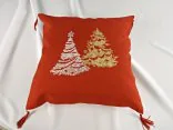 Poszewka dekoracyjna świąteczna w rozmiarze 40x40 cm w kolorze czerwonym z aplikacją choinek.