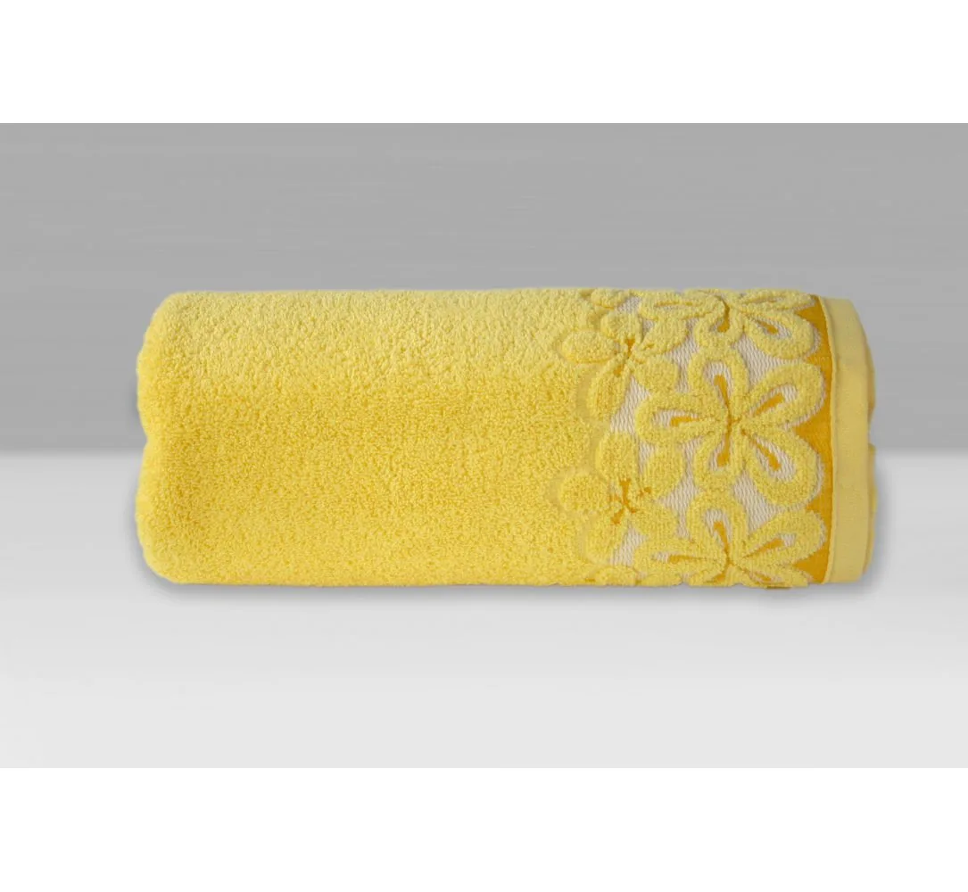 Ręcznik Bella w rozmiarze 70 x 140 cm w kolorze Żółtym firmy Greno, to delikatny ręcznik z botique collection. Gruby, mięsisty jednobarwny ręcznik z delikatną alpikacją kwiatową wykonany z wysokogatunkowej bawełny.