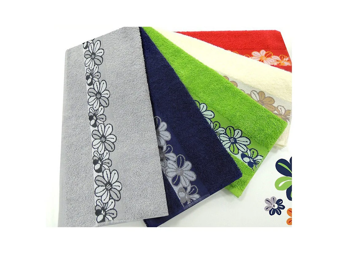 Ręcznik Dalia 50x90 cm w kolorze bordowym firmy Greno to kolekcja ręczników o spokojnych stonowanych kolorach ozdobionych dekoracyjną bordiurą z motywem kwiatowym.