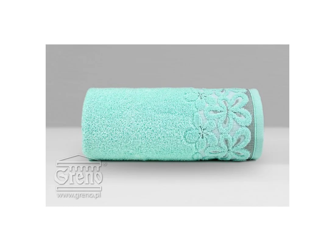 Ręcznik Bella 70 x 140 cm w kolorze miętowym firmy Greno, to ekskluzywny ręcznik z botique collection. Gruby, mięsisty jednobarwny ręcznik z delikatną alpikacją kwiatową wykonany z wysokogatunkowej bawełny.