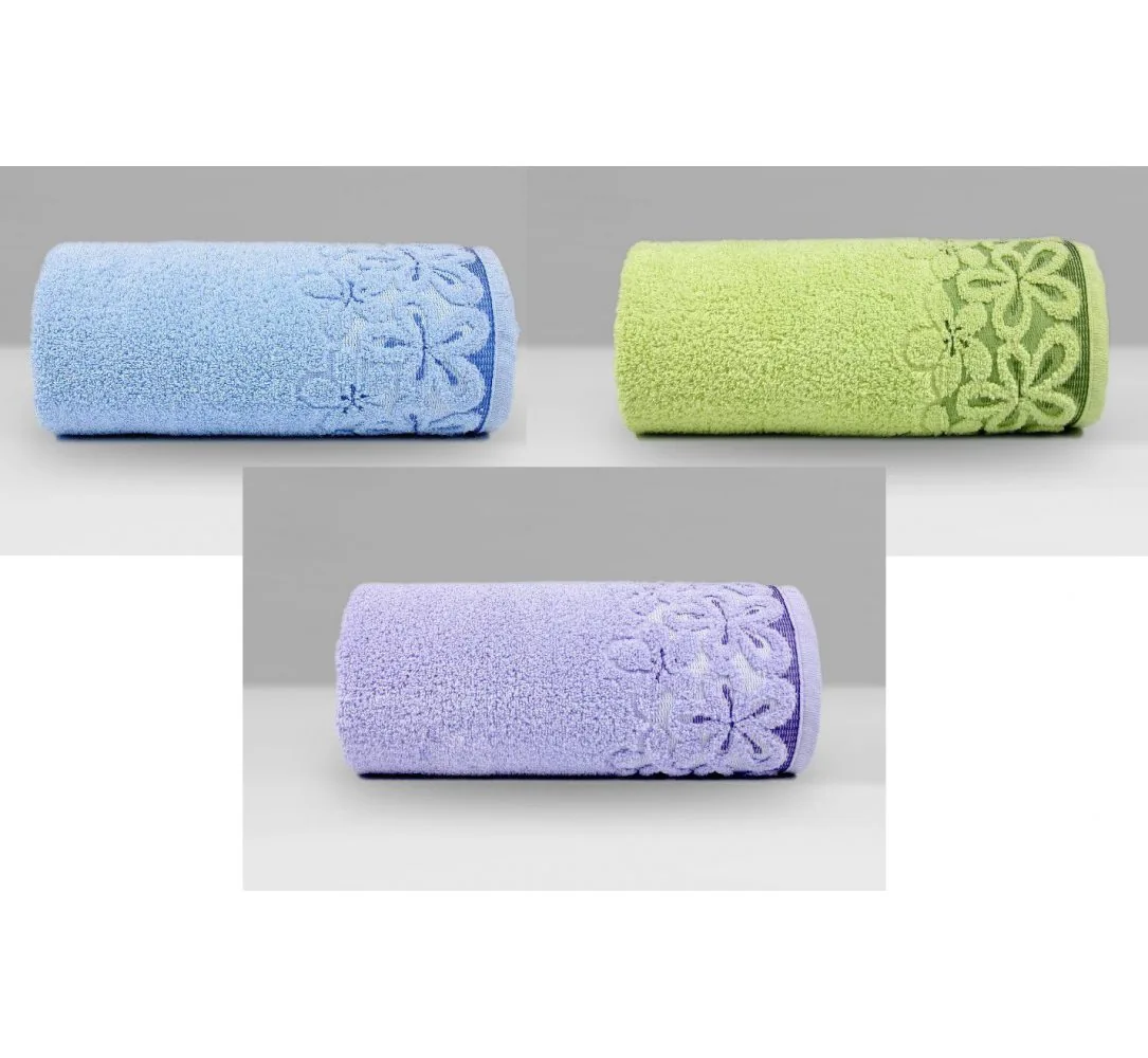 Piękna jasno niebieska kolorystyka oraz delikatna bordiura w drobne kwiatuszki to spełnienie wszystkich którzy oczekują dobrego i pełnego uroku ręcznika, który wniesie do każdej łazienki radość i odrobinę romantyzmu.