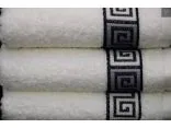 Ręcznik Dunaj 70x140 cm w kolorze białym firmy Greno to kolekcja ręczników o spokojnych stonowanych kolorach ozdobionych dekoracyjną bordiurą z motywem klucza greckiego.