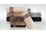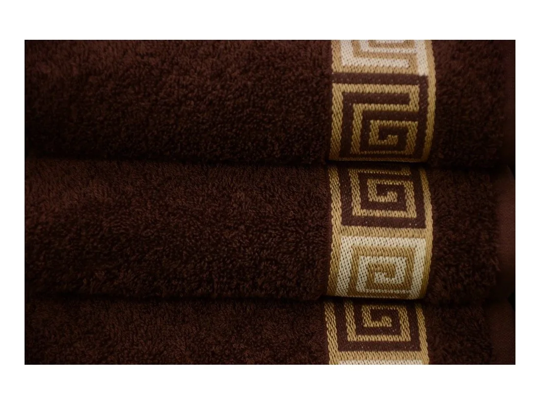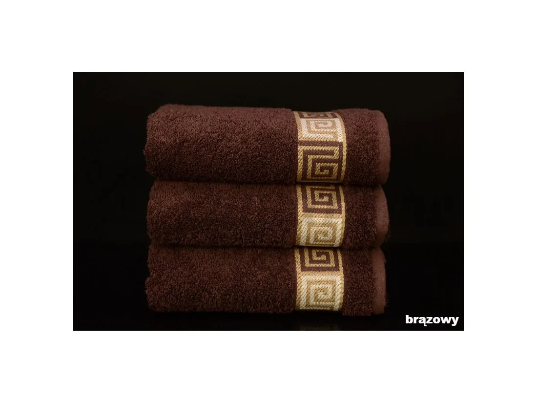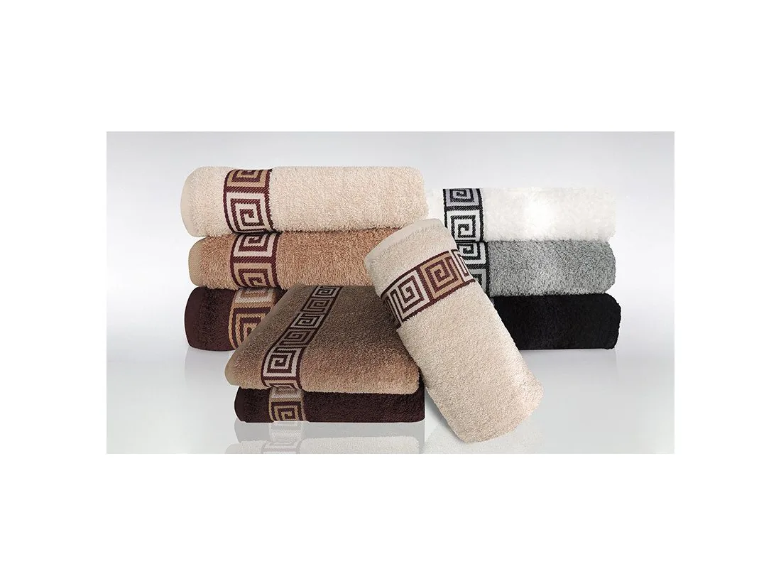 Ręcznik Dunaj 70x140 cm w kolorze brązowym firmy Greno to kolekcja ręczników o spokojnych stonowanych kolorach ozdobionych dekoracyjną bordiurą z motywem klucza greckiego.