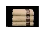 Ręcznik Dunaj 70x140 cm w kolorze kremowym firmy Greno to kolekcja ręczników o spokojnych stonowanych kolorach ozdobionych dekoracyjną bordiurą z motywem klucza greckiego.